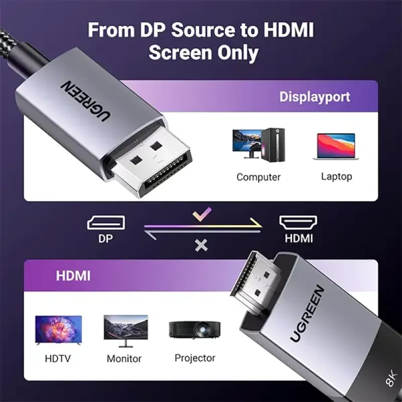 Ugreen DP115 8K DisplayPort to HDMI Cable Price in Bangladesh