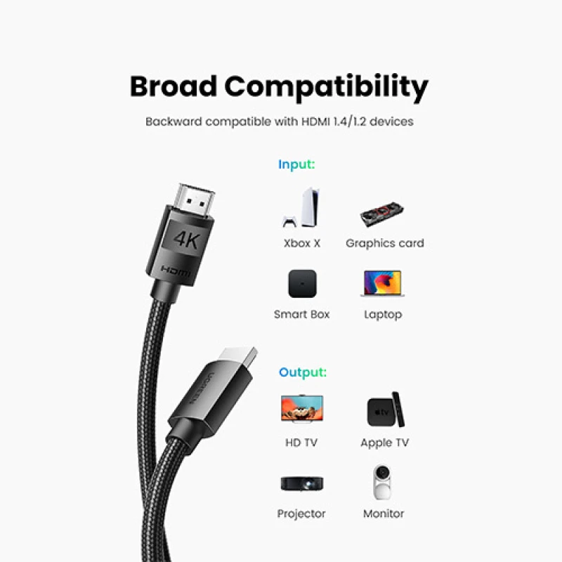 Specifications for Ugreen HD119 4K HDMI Cable Male to Male Cable:
