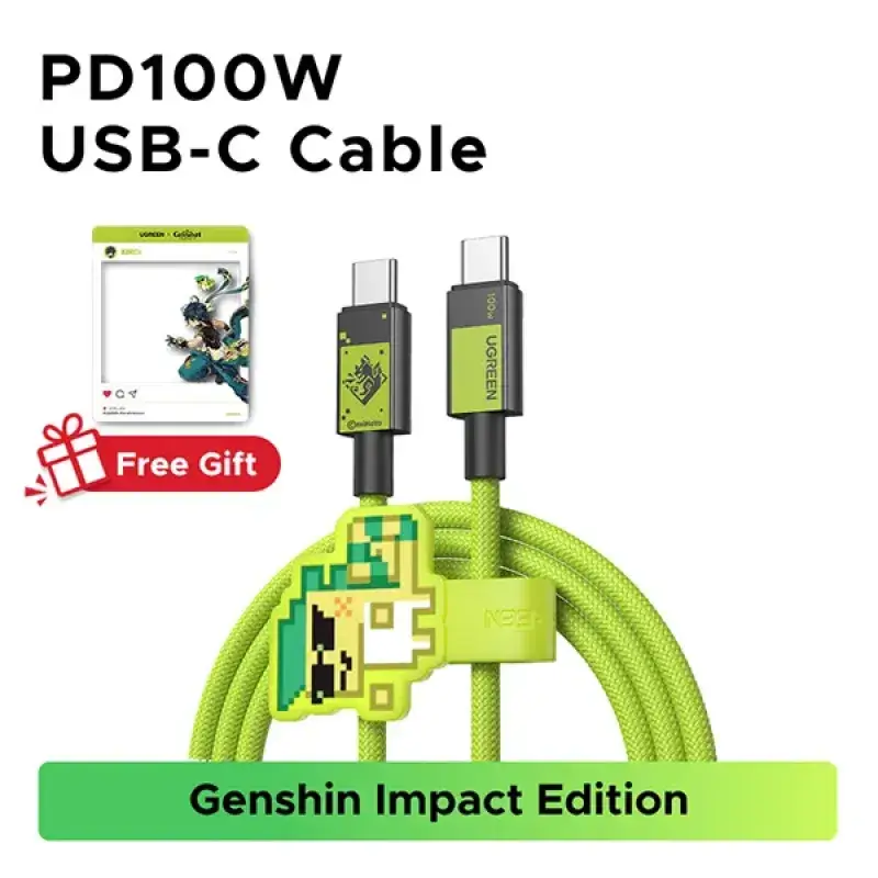 The Ugreen L512 (45063GI) USB-C to USB-C 5A PD Fast Charging Cable Genshin Impact Edition is now available in Bangladesh. Get the original Ugreen products at the most affordable price only at Ajkershop, and enjoy premium quality with the promise of the best customer service in Bangladesh.