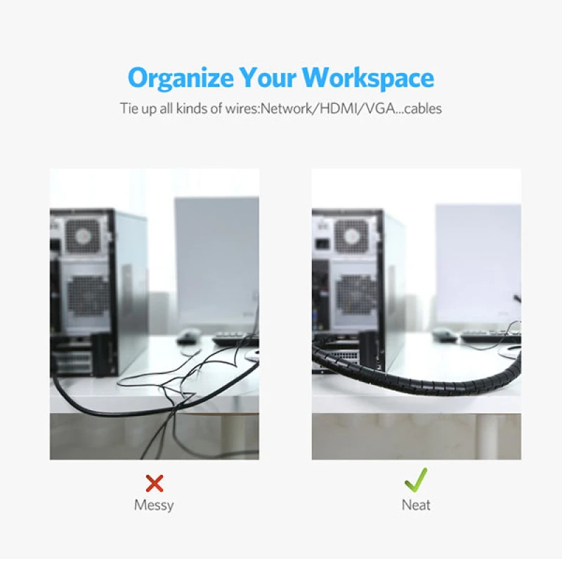 The flexible design allows you to cut the cable organizer to any desired length according to your needs, making cable management easier and more efficient.
