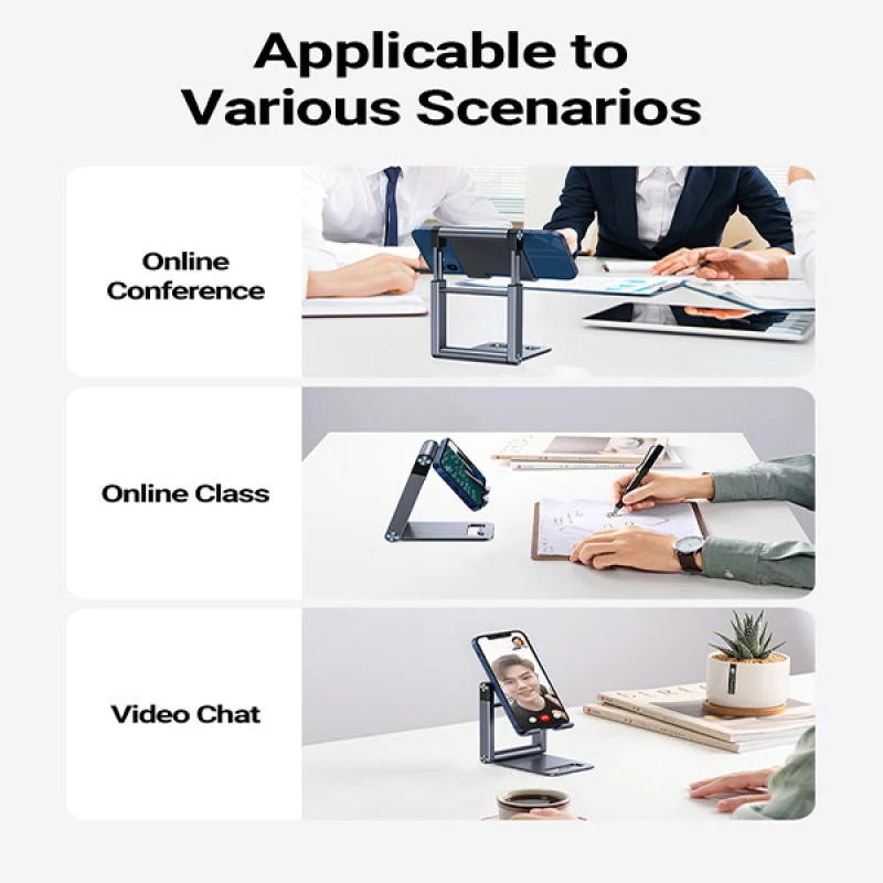 With a compact size (4.72"x 3.94"x 3") and a lightweight design (188g), the Ugreen LP263 Metallic Stand is perfect for travel, home, or office use. It folds easily, making it portable and easy to carry. The silicone padding ensures your device stays secure and protected.