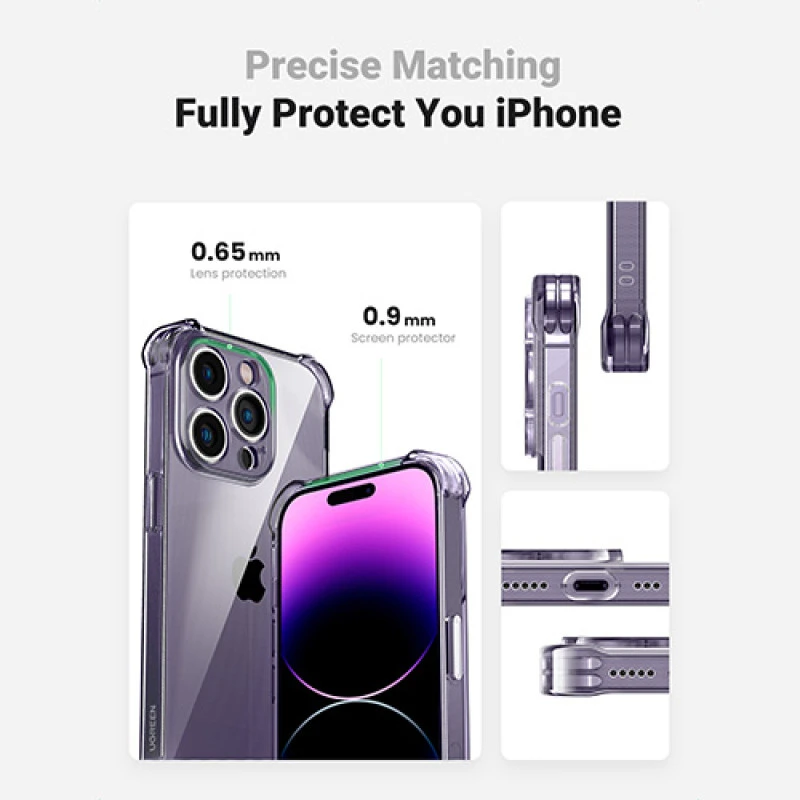 The Ugreen LP604 Bright Cushion Case for iPhone 14 Pro Max offers top-tier protection without hiding the original beauty of your iPhone. Made from flexible, shock-absorbing TPU gel, this case provides 360-degree airbag protection to guard against drops, scratches, and shocks.