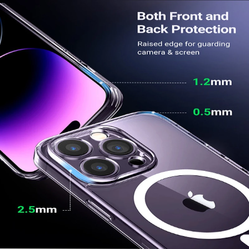 The UGREEN LP644 Magnetic Protective Case for iPhone 14 Pro Max delivers premium protection and style with a minimalist transparent look. Crafted from durable TPU, the case offers enhanced grip and protection while keeping your iPhone 14 Pro Max looking sharp and sleek. With shock-bumper corners and airbag protection, it shields your phone from unexpected drops and impacts. The raised bezels provide added defense for both the screen and the camera lens against surface scratches.