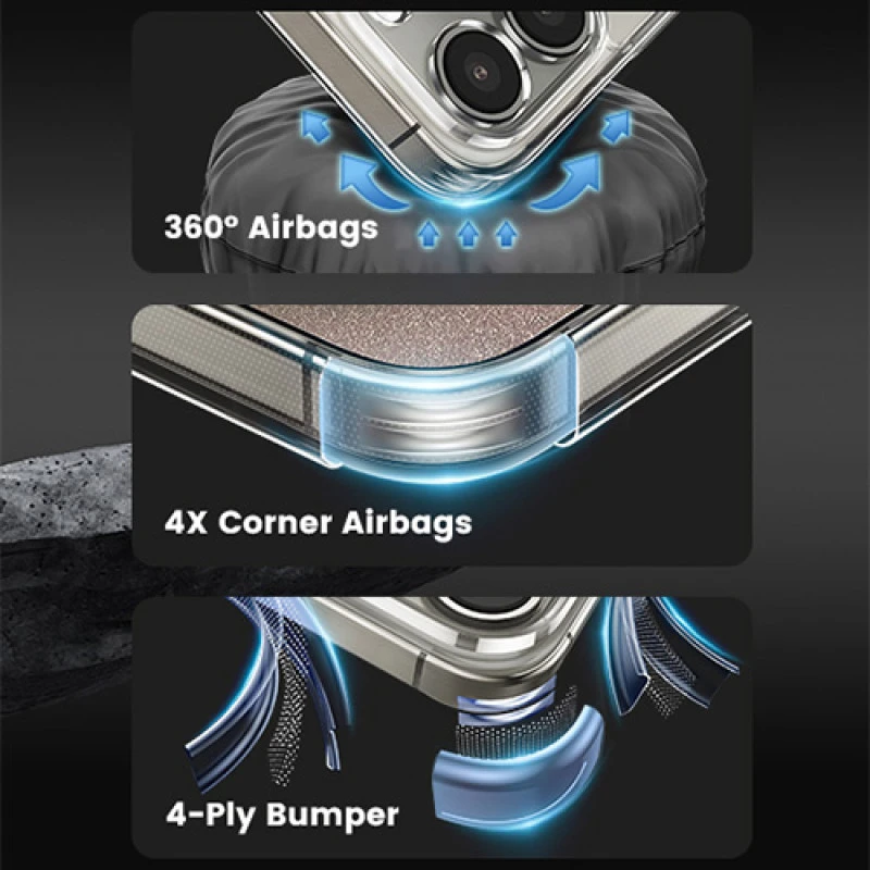 Its double airbag system protects your phone from drops, while the raised edges safeguard the camera and screen against scratches. Imported Bayer materials ensure high durability and clarity over time. MagSafe compatibility is ensured through the use of 38 N52 grade NdFeB magnets, enabling seamless wireless charging and secure attachment to MagSafe accessories without removing the case.