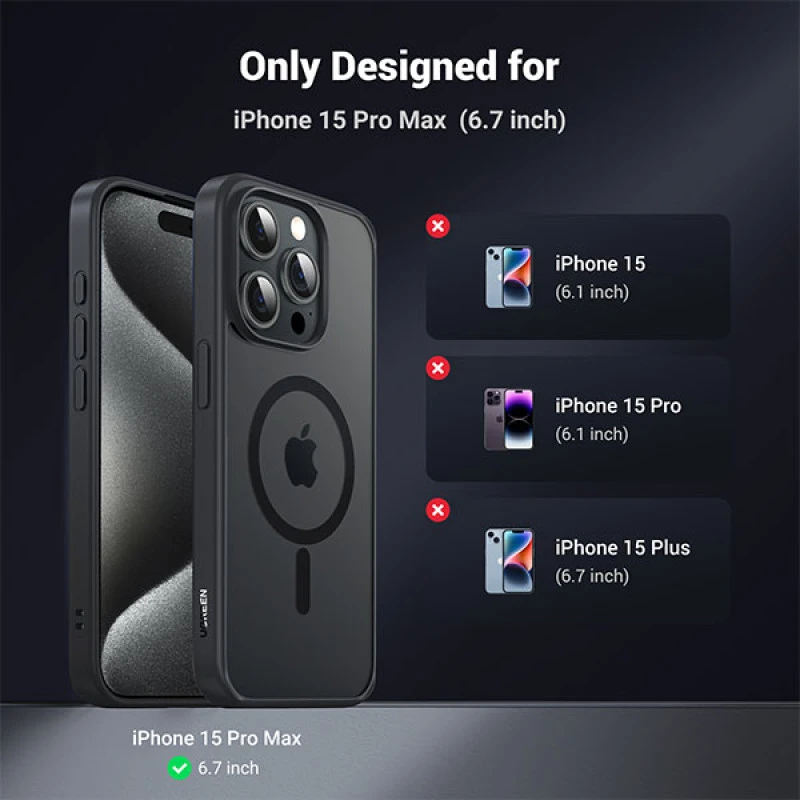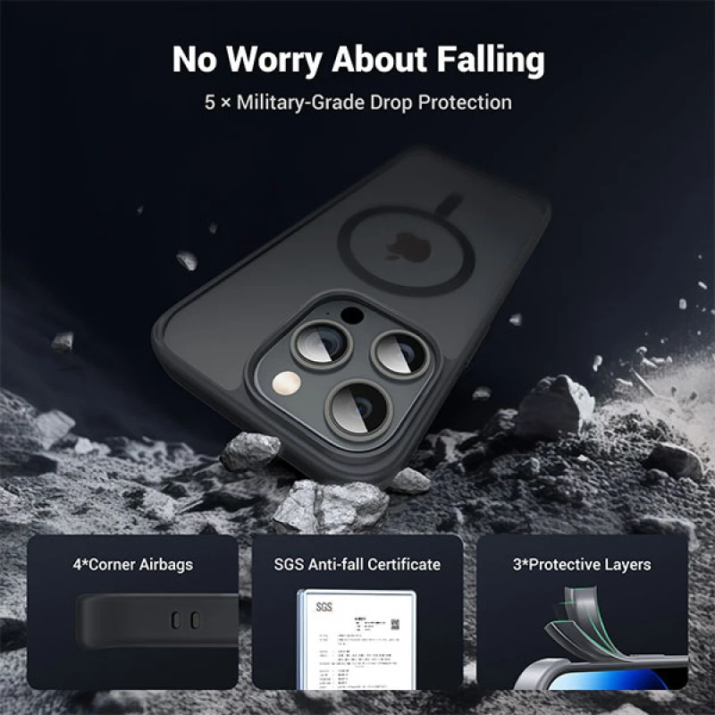 The UGREEN LP751 (25403) Magnetic Protective Case for iPhone 15 Pro Max offers high-grade drop protection and a matte anti-fingerprint surface that keeps your device looking clean and elegant. Crafted with MIL-Grade shockproof materials, it ensures your phone is protected from accidental drops, bumps, and scratches.
