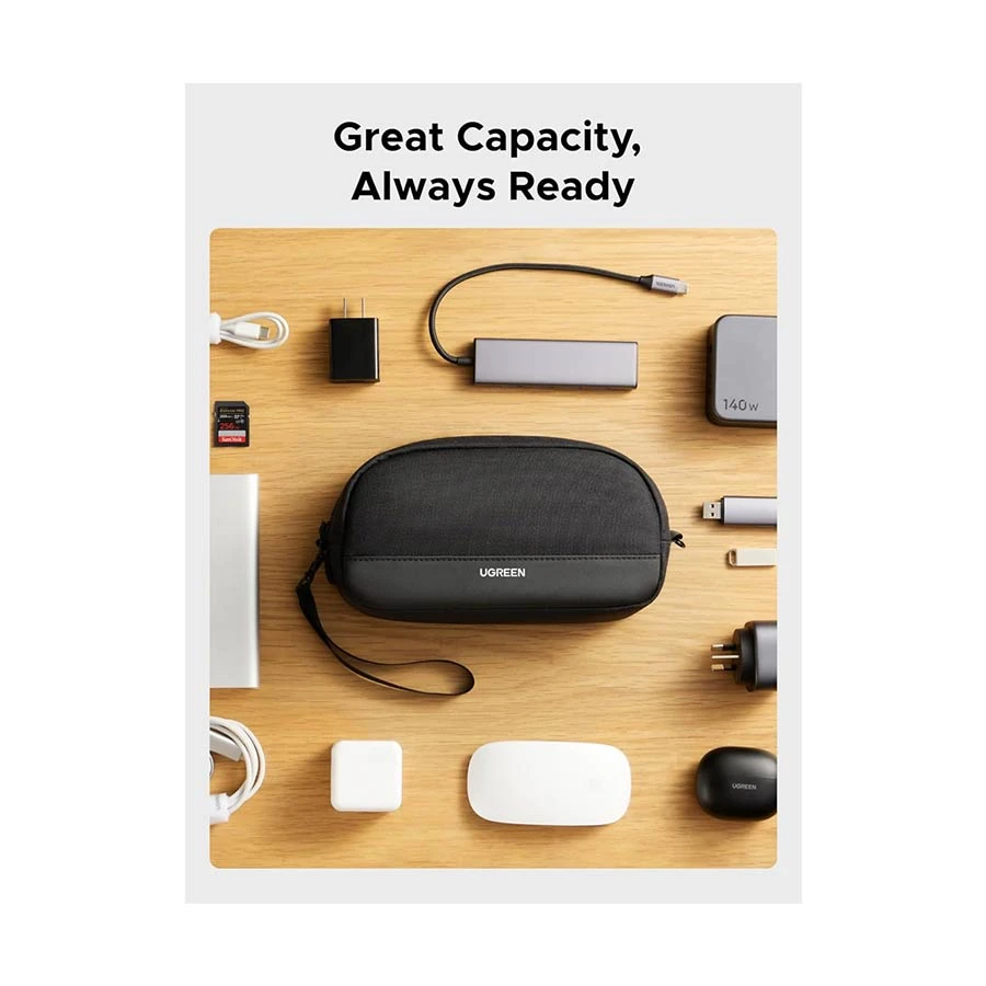 The Ugreen LP930 Small Black Travel Organizer Bag is a smart and compact solution for organizing your everyday tech essentials. Whether you’re traveling or simply decluttering your workspace, this pouch keeps your accessories like cables, chargers, memory cards, earphones, and small gadgets neatly arranged and protected.