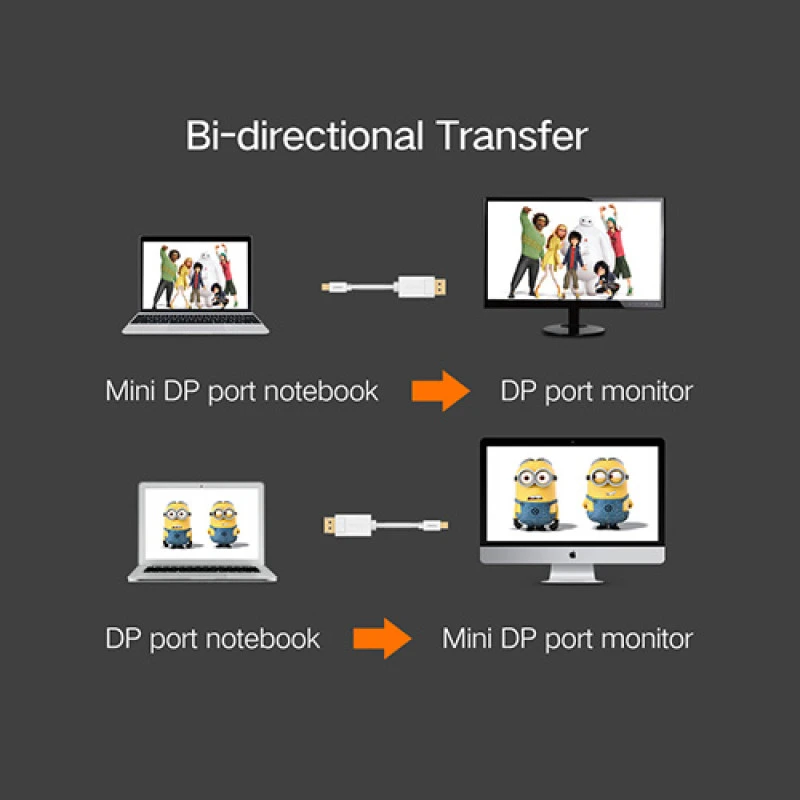 Compatible with Mini DP and Thunderbolt 2 ports on MacBook, Ultrabook, Desktop, and Laptop