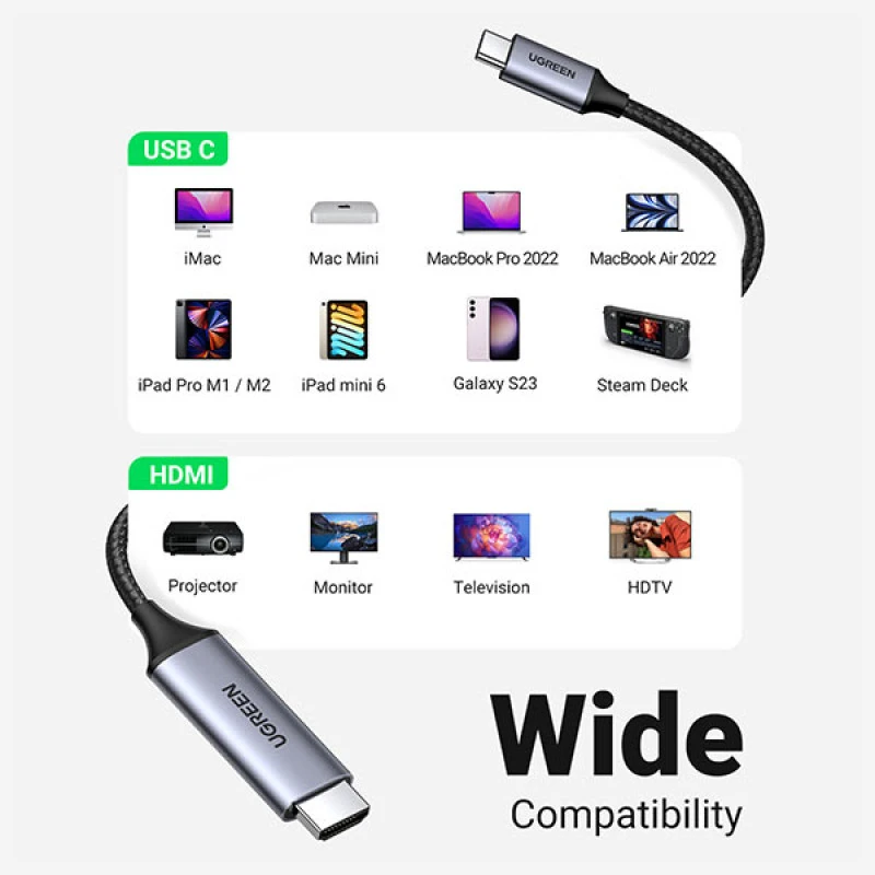 Specifications for Ugreen MM142 (50570) USB-C to HDMI Cable: