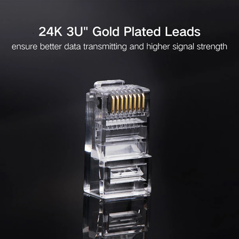 The UGREEN NW110 (50246) RJ45 Network Connector is engineered for excellent performance and long-term reliability. Made with pure copper pins and 24K gold-plated contacts (50μm thickness), these connectors ensure superior signal quality and reduce the risk of breakage during installation. Perfectly compatible with Cat5 and Cat5e cables, this 100-piece pack is ideal for IT professionals, networking projects, and office or home setups.