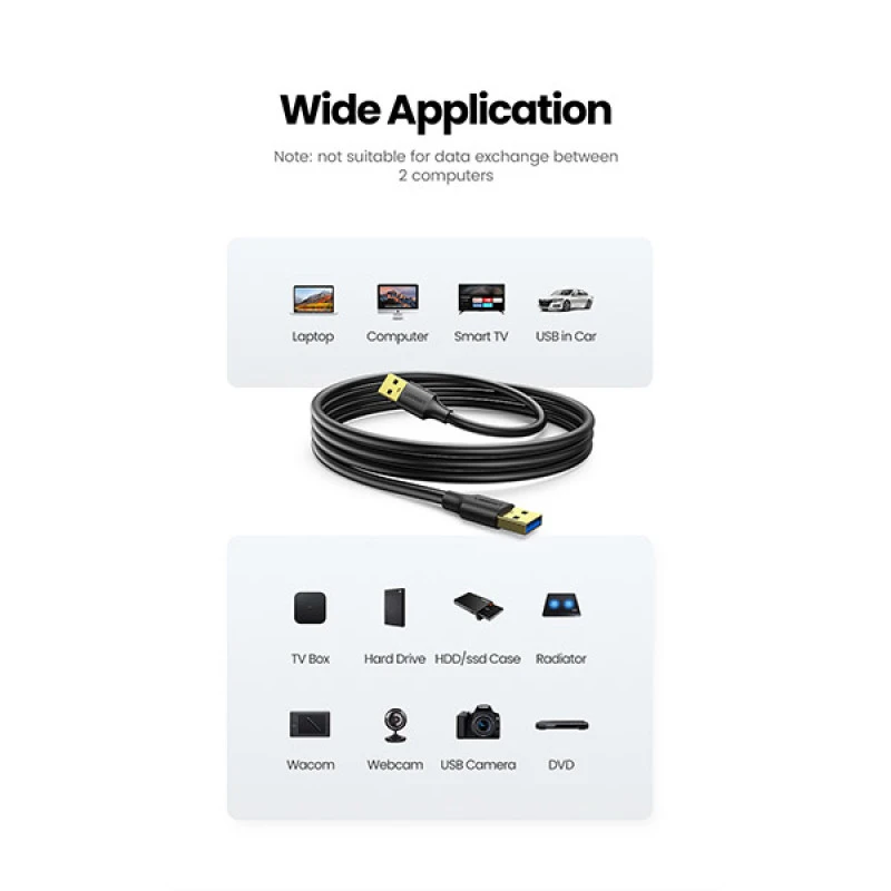 The UGREEN US128 USB-A 3.0 Male to Male Cable is designed to provide ultra-fast data transfer speeds and reliable connectivity. Supporting USB 3.0 performance with a 5Gbps transfer rate—10x faster than USB 2.0—this cable is ideal for connecting USB 3.0-enabled external devices such as hard drives, hubs, and enclosures. It’s also backward compatible with USB 2.0 and USB 1.1.