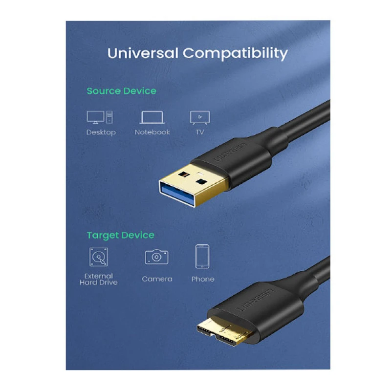 The Ugreen US130 USB 3.0 A to Micro B Cable is now available in Bangladesh. Get the original Ugreen product at the most affordable price only at Ajkershop, with top-notch customer service and 100% authenticity guaranteed.