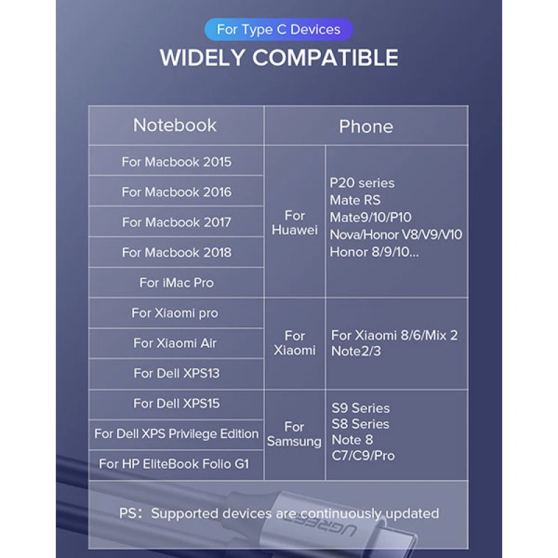 Power Delivery: Up to 60W PD charging (support 5A current)