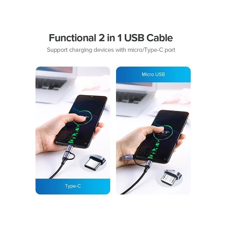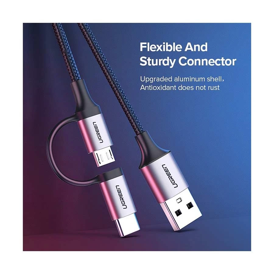 Specifications: Ugreen US177 (30875) USB 2.0 A Male To Micro USB + USB-C Male 3A Data Cable
