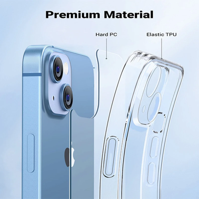 The Ugreen LP617 iPhone 14 Case is a classy clear case designed for users who want both protection and style. Made from anti-yellowing Bayer PC+ acrylic with flexible TPU edges, this hybrid case provides 360° all-around airbag protection to absorb shocks and prevent drops. The transparent finish highlights your iPhone's original look while guarding it against daily scratches and accidental drops. Its 2.0mm raised edges around the camera and screen help prevent surface contact, reducing wear and tear. The buttons are soft yet responsive, offering an ergonomic feel, and the slim 1.5mm design ensures a compact fit without adding bulk.