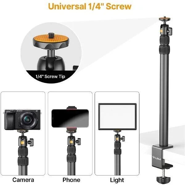 Desk mount stands 17.3-41.3 inches adjustable, suitable for overhead shooting and lighting.