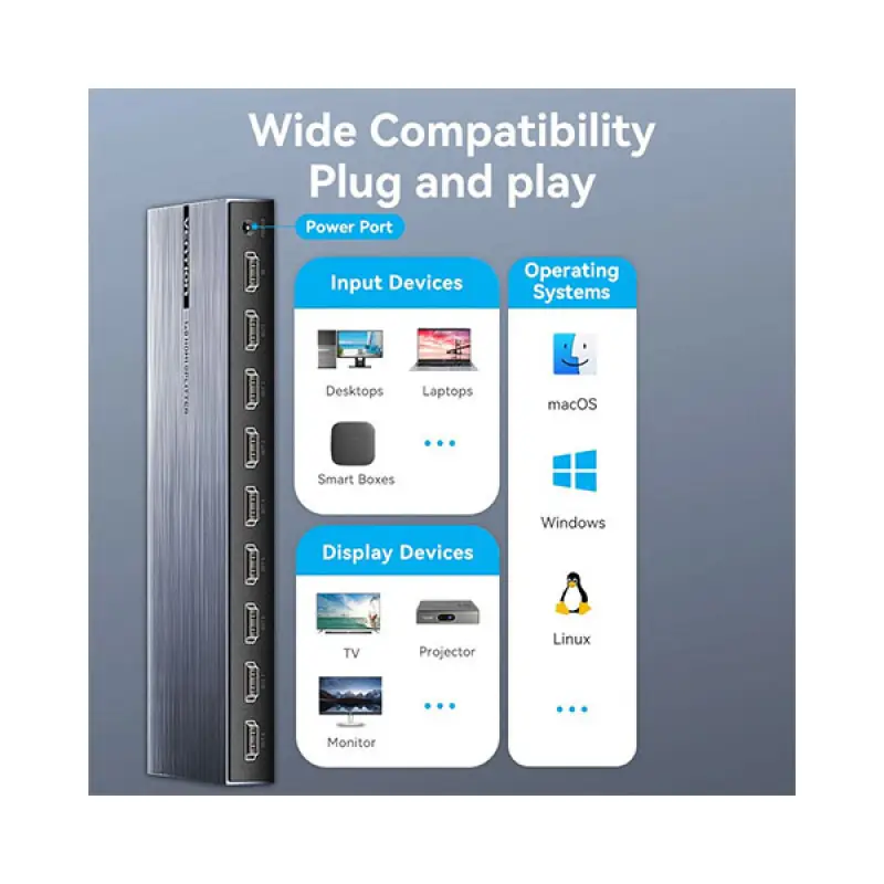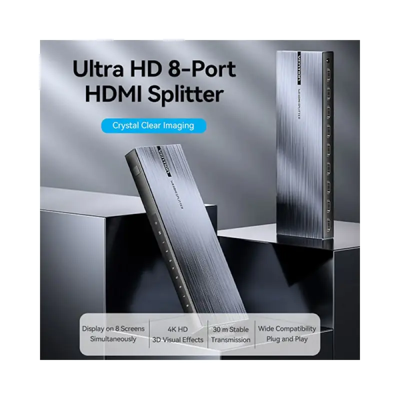 The Vention AKQB0-EU 4K 1x8 HDMI Splitter is now available in Bangladesh. Get the original Vention products at the most affordable price only at ajkershop.com, and enjoy premium quality with the best customer service in Bangladesh.
