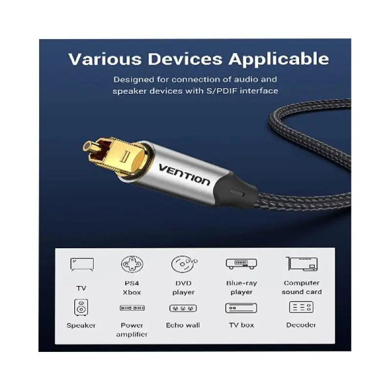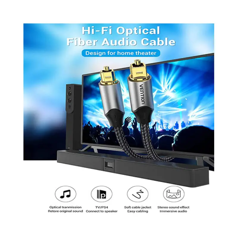 The Vention BAVBI Optical Fiber Audio Cable is now available in Bangladesh. Get the original Vention products at the most affordable price only at Ajkershop and enjoy premium quality with the best customer service in Bangladesh.